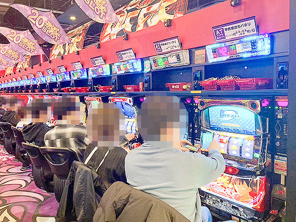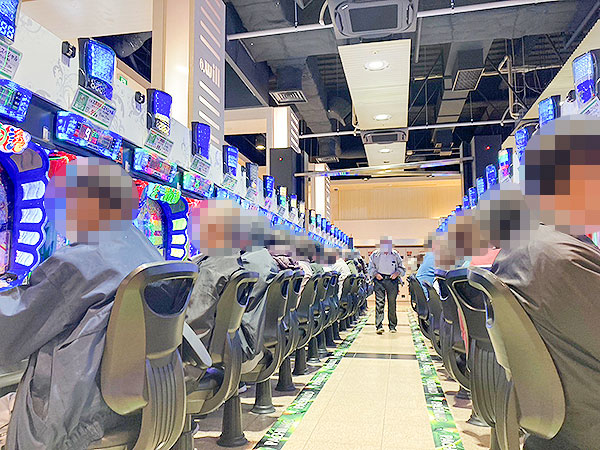 5円パチスロは全体的に高稼働。空き台が見当たらないほどの盛況ぶりだった。