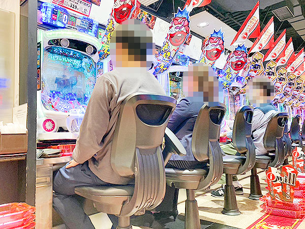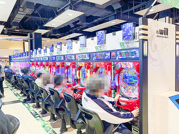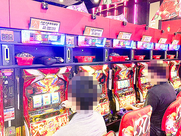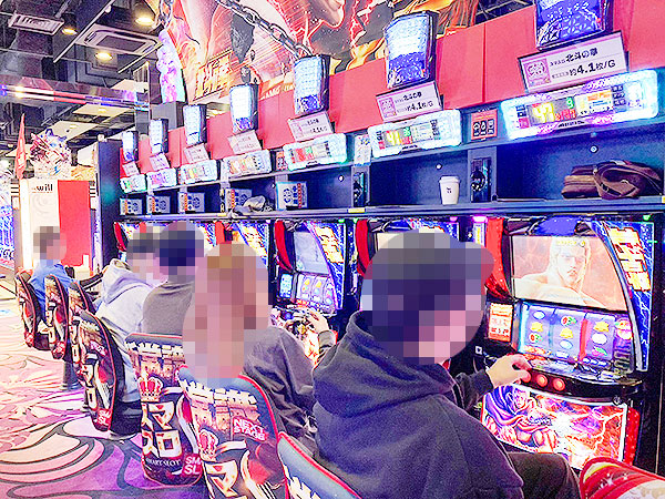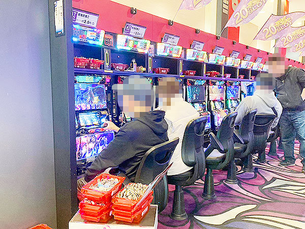 取材時は多くのプレイヤーが来店。パチンコ・パチスロともに、様々な機種が支持を得ていた。