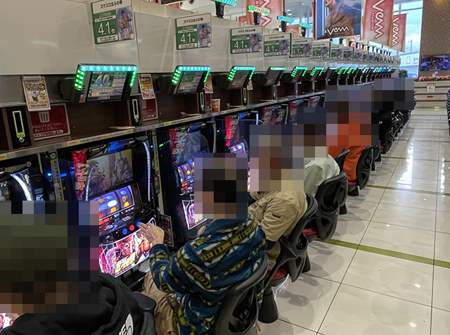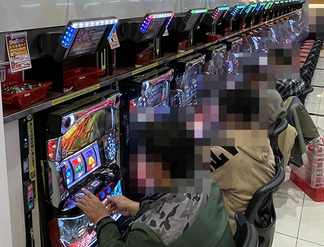 取材中にボーナスを積み重ね、4箱以上の持ち玉で遊技をおこなっているプレイヤーの姿もあった。