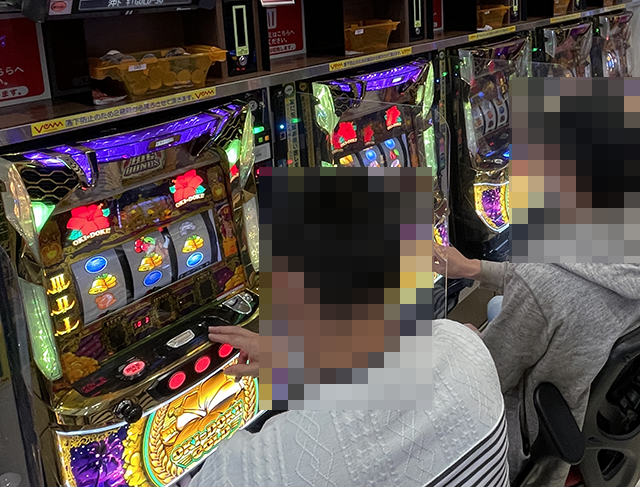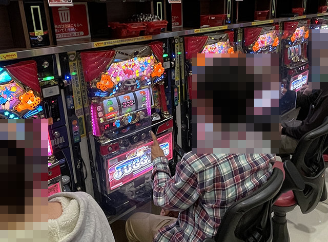 「マイジャグラーⅤ」にて、プレイヤーの表情がとくに明るい台を発見。