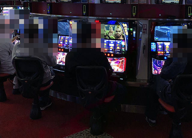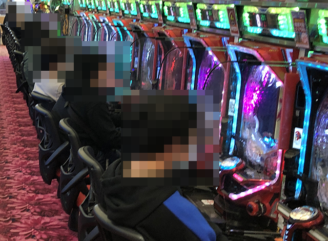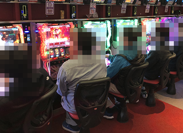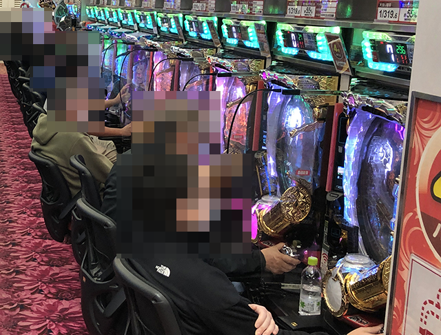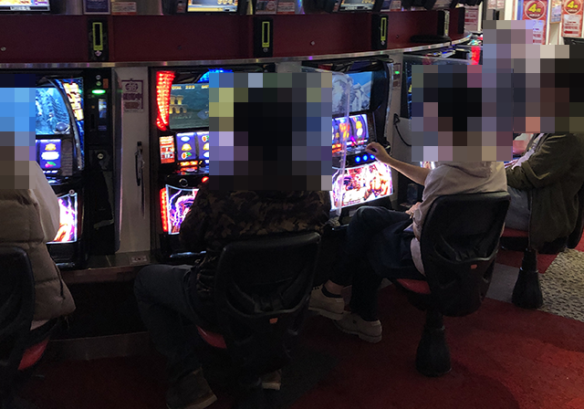 パチスロコーナーをまわっていると、「スマスロ北斗の拳」でにぎやかな光景を目にした。