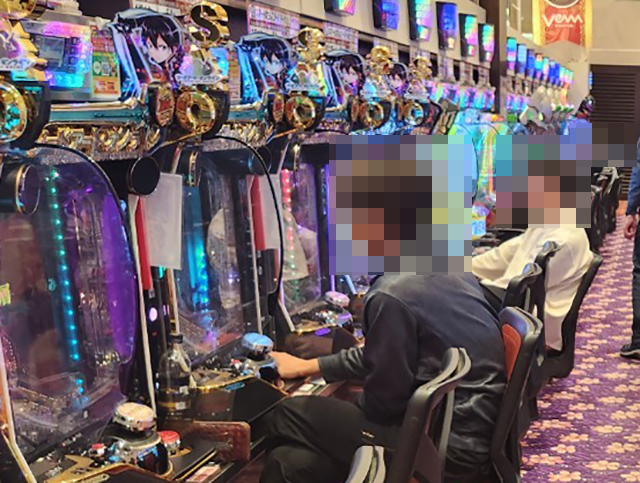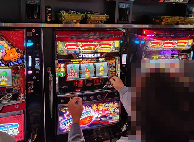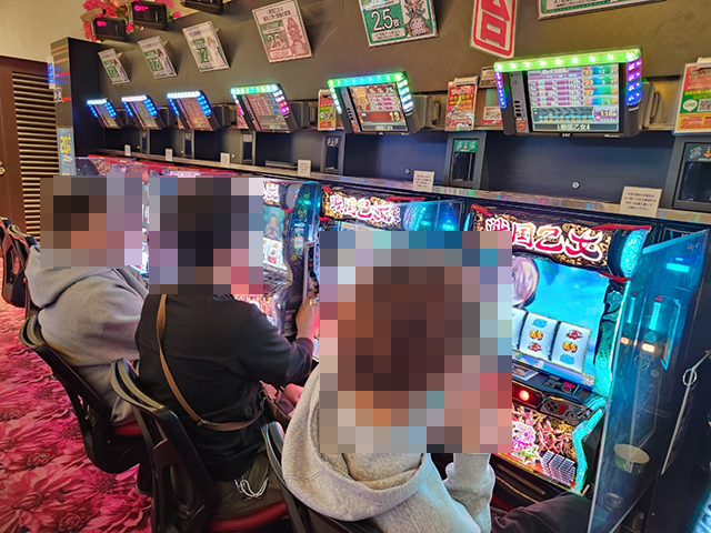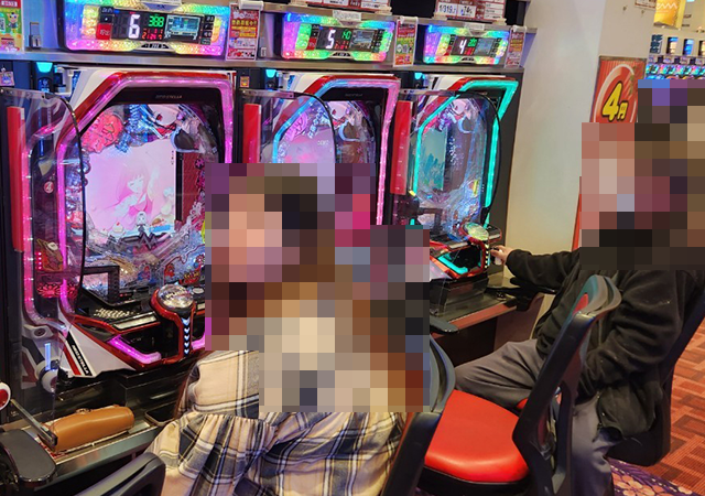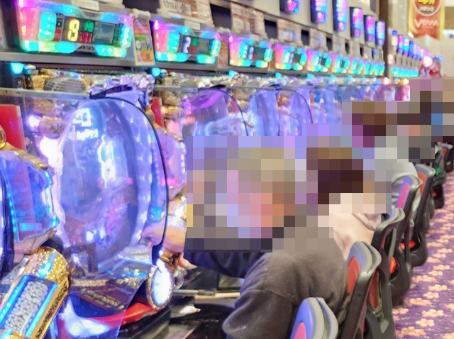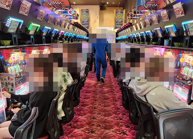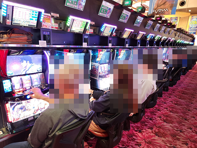うれしそうに遊技をおこなうプレイヤーが並び、ユーザーファーストともいえる空間となっていた「マイジャグラーⅤ」。