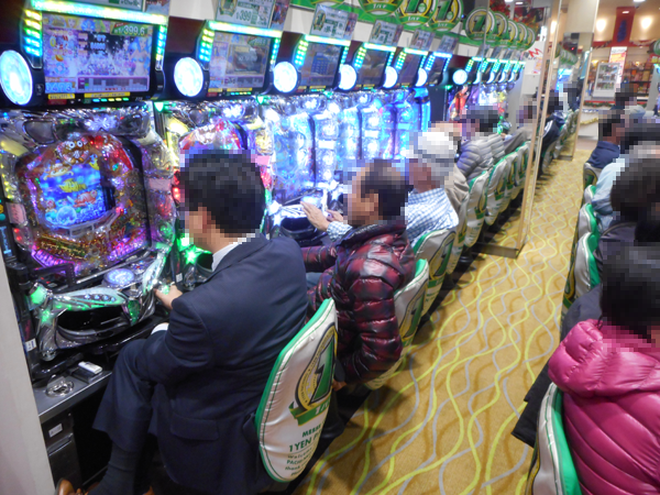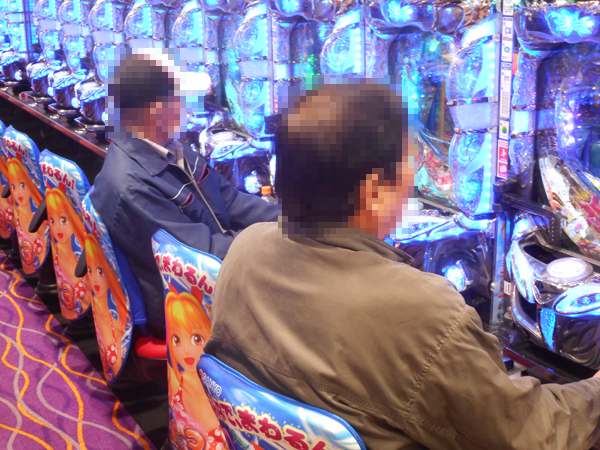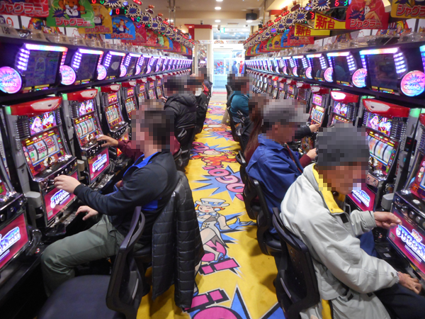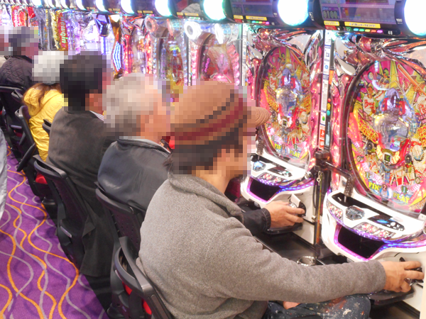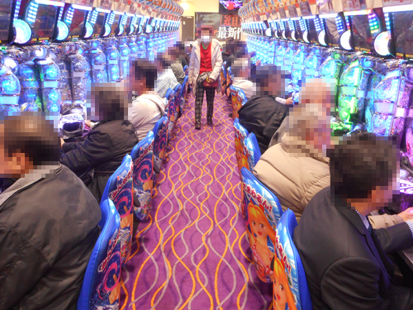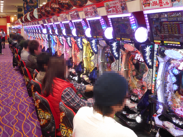 4円パチンコは朝と同様に「CRまわるんパチンコ大海物語3」がほとんど満席で、人気機種の「ぱちんこCR北斗の拳6 拳王」でも多くのプレイヤーが遊技している。どちらの機種も笑みを浮かべるプレイヤーも多かった。