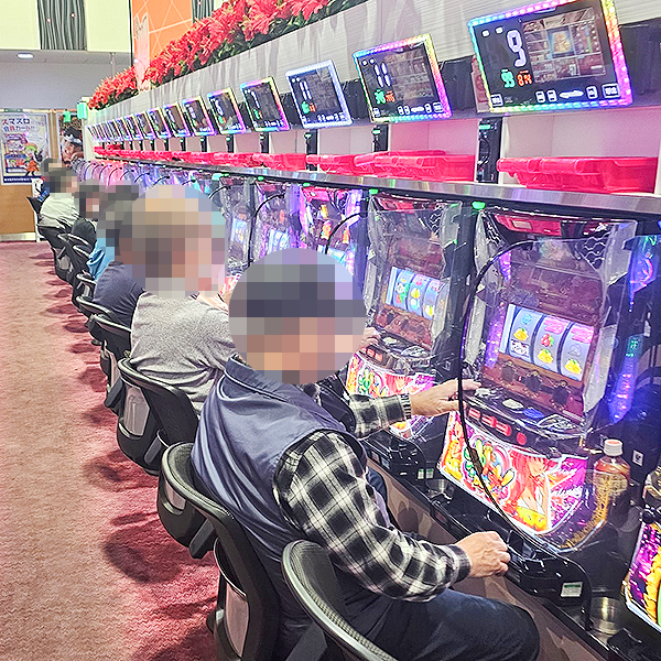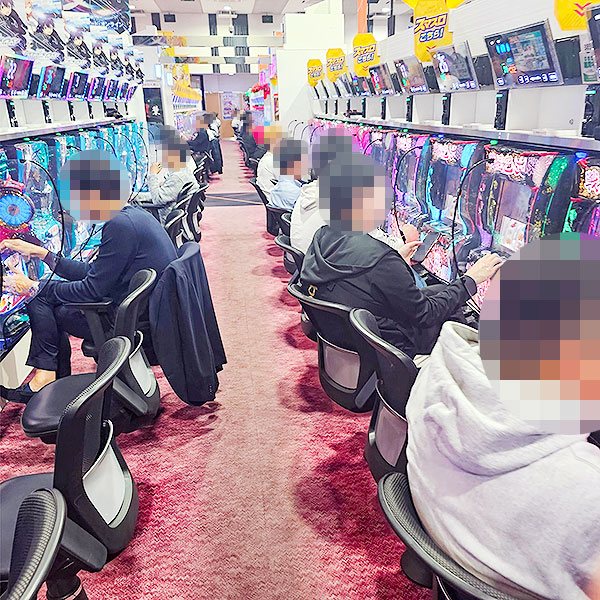 「沖ドキ!DUO-30」をはじめとする沖スロの支持も厚く、シマ全体がプレイヤーの熱気に包まれていた。