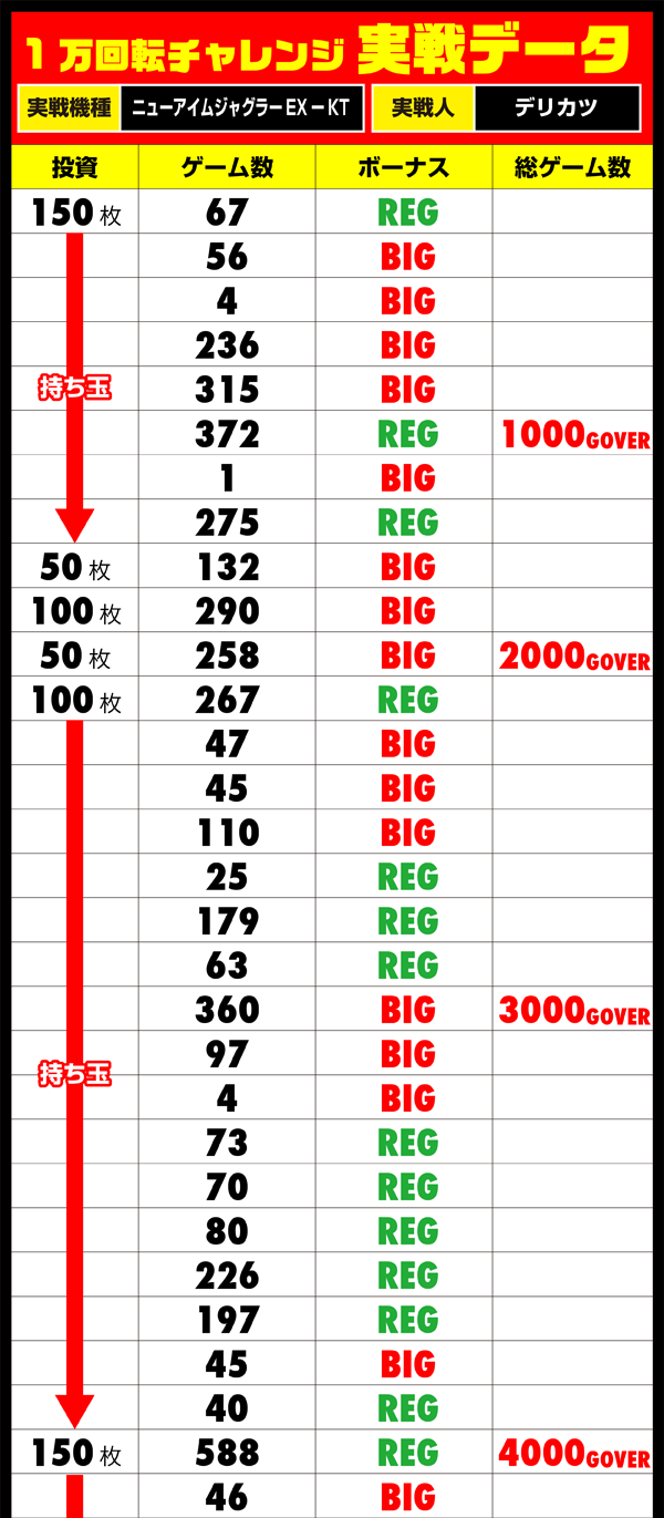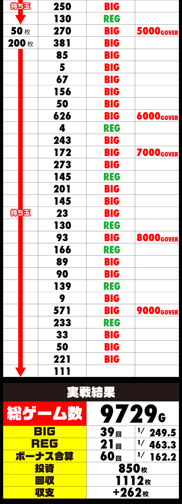 ゲーム数のほうは9000G後半と、惜しくもチャレンジ失敗であったが差枚はプラスの結果で終了となった!