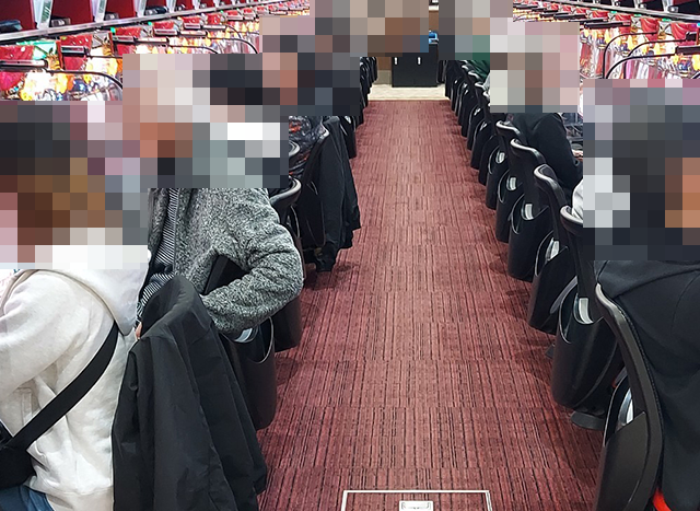 楽しそうに遊技をおこなっているプレイヤーが並んでおり、シマ全体が明るいムード。