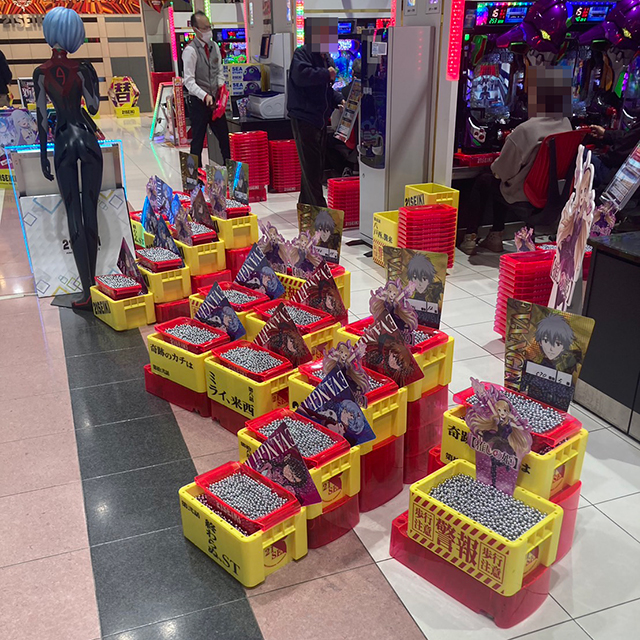 パチンココーナーの注目ボックスは、『新世紀エヴァンゲリオン~未来への咆哮~』30台設置のボックス。この店の最大設置マシンだけあって、その勢いには凄まじいものが…。ざっと数えただけでも10,000玉超えが計11台、30,000玉超えが計6台、50,000玉超えが計4台!さらに387番台からは76,540玉という規格外の記録まで飛び出した。『新世紀エヴァンゲリオン~未来への咆哮~』だけでここまでの記録が生まれるとは…。