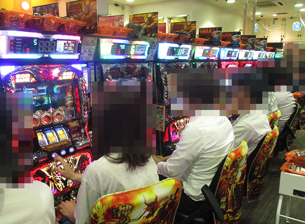 「バジリスク~甲賀忍法帖~絆」や「ミリオンゴッド-神々の凱旋-」の盛り上がりも大きく、多数のAT・ART機から活気が感じられた。