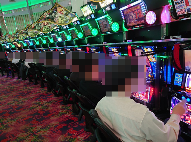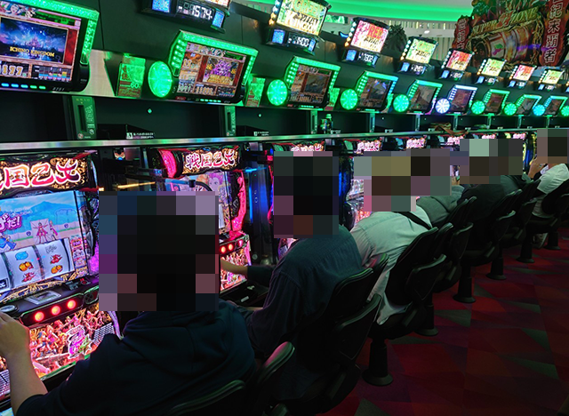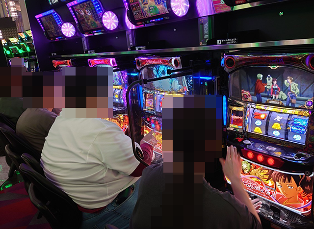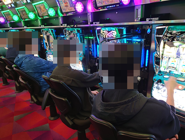 パチスロの状況をうかがうと、さまざまな機種でプレイヤーたちが遊技を楽しんでいた。