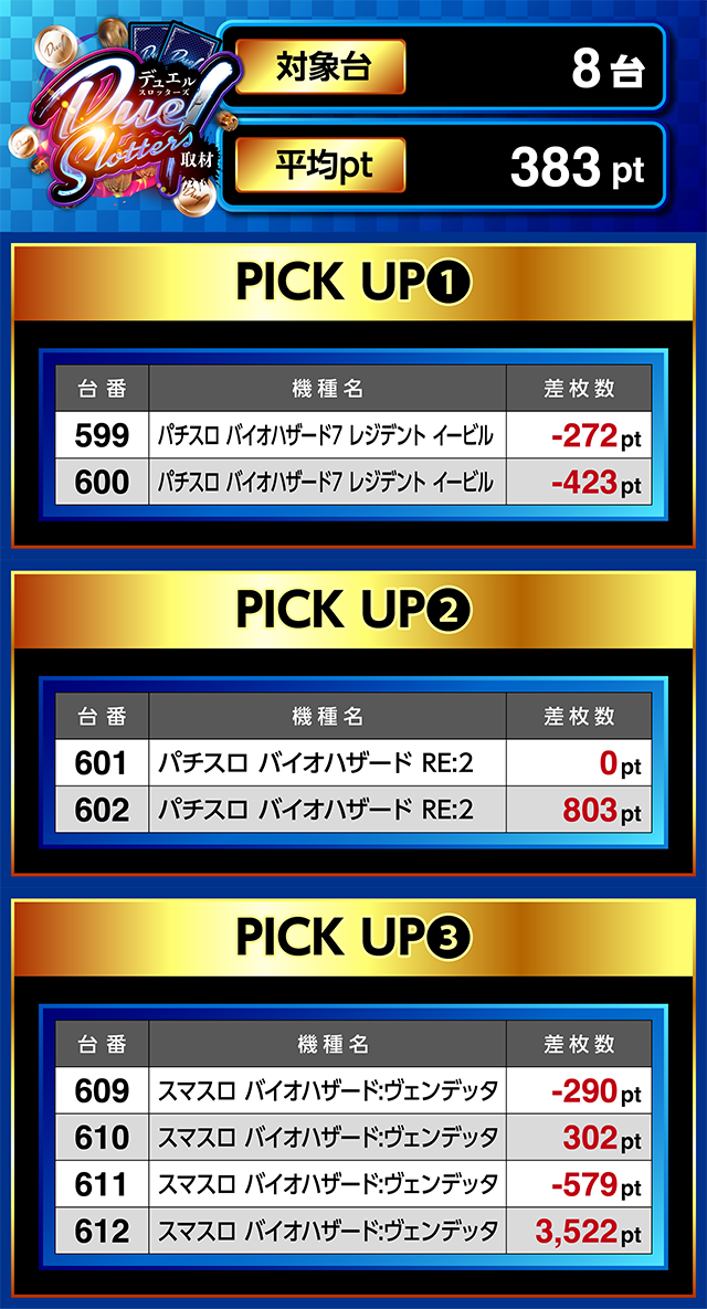 PICK UP機種・612番台「スマスロ バイオハザード:ヴェンデッタ」…3,522pt