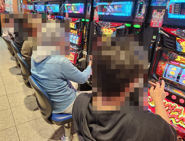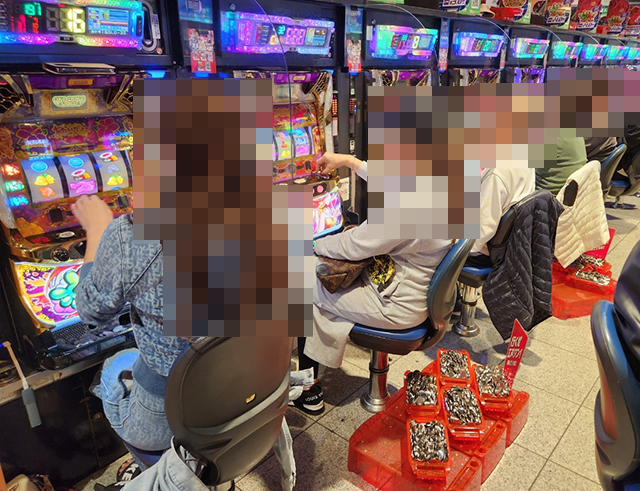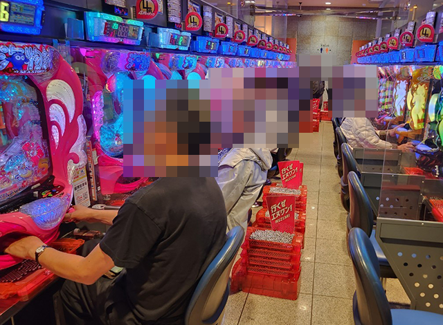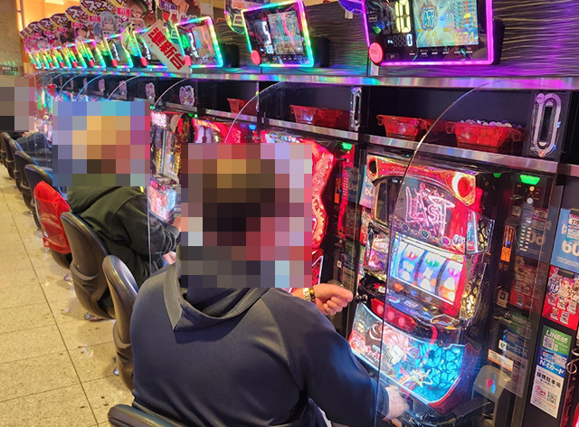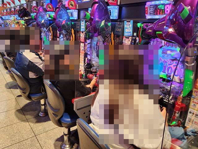 パチンコにも、うれしそうに遊技をおこなっているプレイヤーが多数。