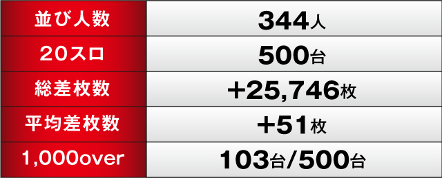総差枚+25,746枚、+1,000枚オーバー103/500台という結果で終了した今回のヒーローズレポート。内容も申し分なしで、スマスロを筆頭に多くの機種に楽しめる環境が整っていたことが窺えた。バツグンの安定感でいよいよ30連勝に大手がかかった同店。これまでの内容的にも十中八九達成されると思われるので、次回実施の際は30連勝の偉業達成の瞬間をぜひ現地で見届けてほしい!