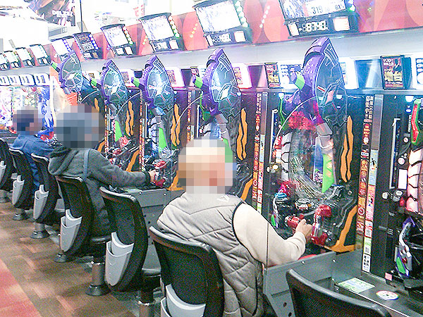 16時ごろの500円/125玉パチンコの様子を見ると「P Re:ゼロから始める異世界生活 鬼がかりver.」や「スマートぱちんこ ソードアート・オンライン」が大盛り上がり。機種性能を存分に発揮するプレイヤーを目の当たりにしている。