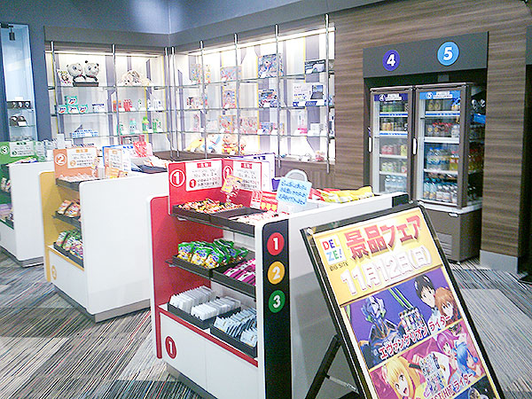景品コーナーにはお菓子をはじめ多彩なアイテムが並んでおり、プレイヤーたちの興味をそそっていた。
