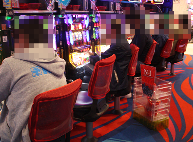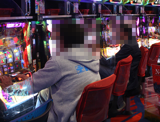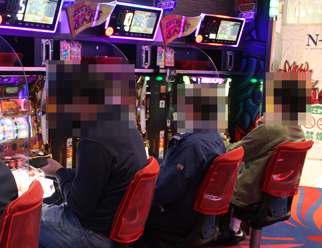 パチスロのみならず、パチンコでも笑顔がみられた「エヌワン新富町店」。表情からも楽しい時間を過ごしていることが伝わってきた。