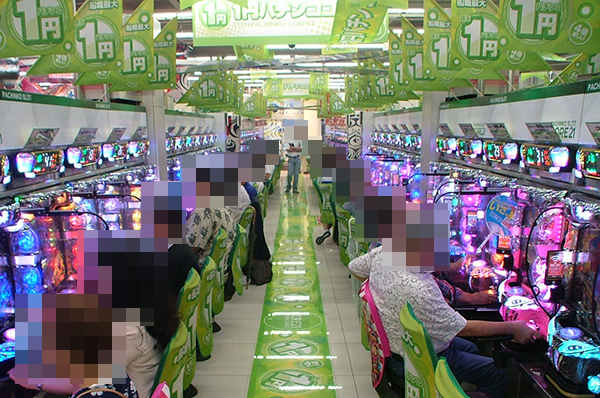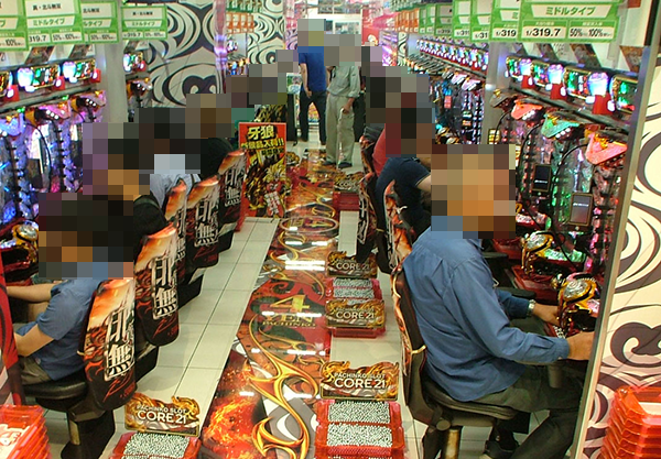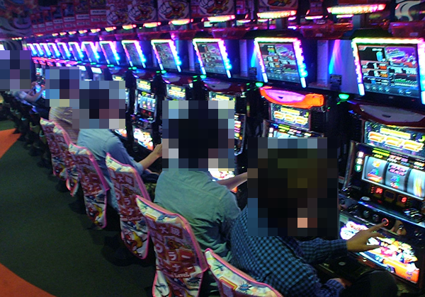 17時に近づいてきたころの店内では、4円パチンコの「CR牙狼 魔戒ノ花」や「ぱちんこCR真・北斗無双」に満面の笑みを浮かべたプレイヤーが多数。
