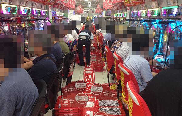 「パチスロ北斗の拳 強敵」や「ミリオンゴッド-神々の凱旋-」も活気づいており、プレイヤーの表情はとても明るかった。