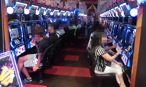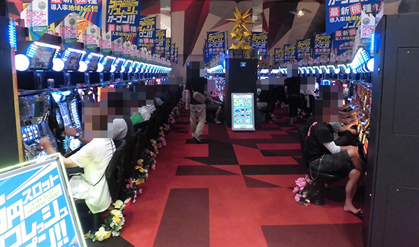 5円パチスロも支持は厚く、空き台はほとんど見当たらない。
