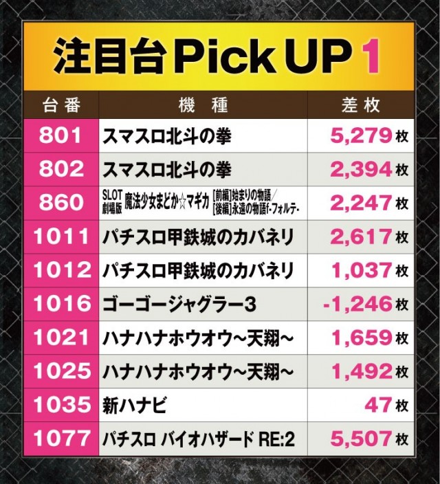 『スマスロ劇場版 魔法少女まどか☆マギカ[前編]始まりの物語/[後編]永遠の物語f-フォルテ-』や『パチスロ甲鉄城のカバネリ』などが2,000枚オーバーと好調で、多くのプレイヤーが充実した時間を過ごせていたことがうかがえる。