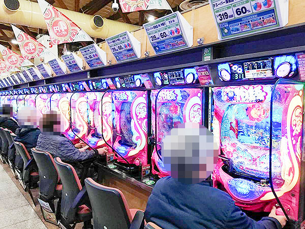 取材時は貸し玉料金に関係なくプレイヤーでにぎわっており、各シマとも明るい雰囲気に包まれていた。