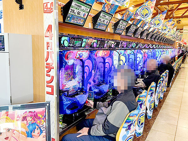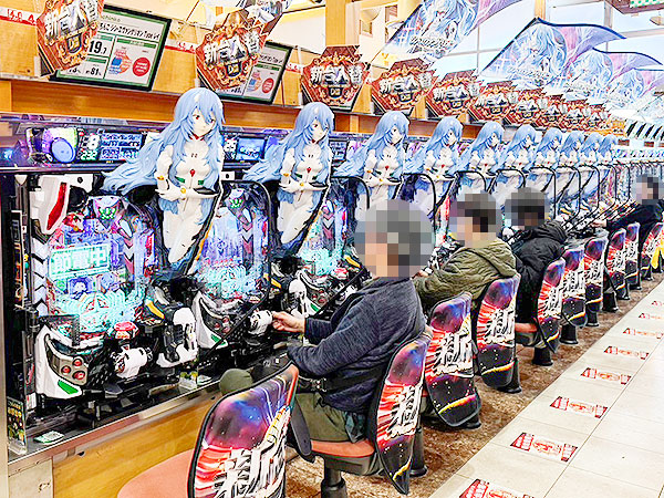 14時半ごろの4円パチンコでは「ぱちんこ シン・エヴァンゲリオン Type レイ」や「P大海物語5」が活況で、機種性能を上手く引き出すプレイヤーを複数目撃している。
