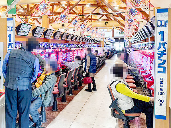 100円/90玉パチンコをチェックすると、海物語シリーズを中心に高稼働。各人、好きな機種を見つけ出し、心から楽しんでいたように思う。