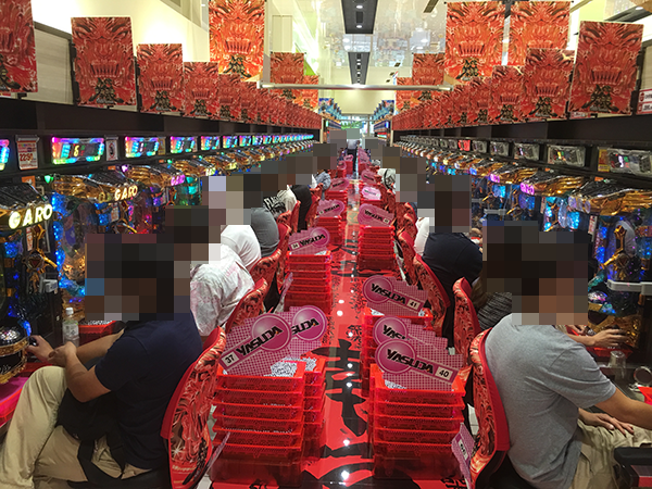 16時を過ぎるころのホール内をのぞいてみると、4円パチンコでは「CR牙狼 魔戒ノ花」や「ぱちんこCR真・北斗無双」の盛り上がりが目立っており、笑顔のプレイヤーも多数。