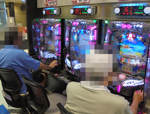 そのほかにも、 1000円/192枚パチスロや1000円/960玉パチンコなど、低貸し玉コーナーで遊技をはじめる姿も多かった。