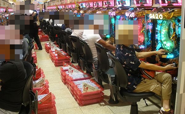 朝イチの様子をみると、4円パチンコでは海物語シリーズがほぼ満席。