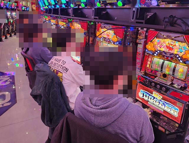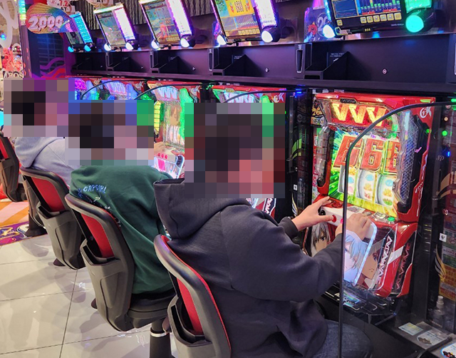 「スマスロ北斗の拳」や「スロット ソードアート・オンライン」などでも、楽しそうに遊技をおこなっている姿がみられ、華やかな雰囲気が感じられた。