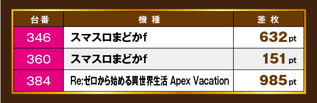 今回の「ウエスタン佐倉店」の結果は全国制圧。前回に続き、2連続での全国制圧はさすがの一言に尽きる。今回も6つの国の全てから安定したプラス差枚記録が生まれており、全国制圧もさもありなんといった感じだろう。この勢いなら、次回も全国制圧を果たし、3連続Vの偉業を達成する…かも!?