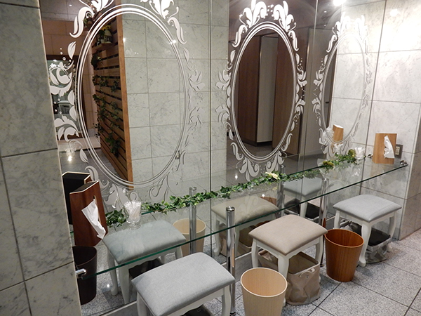 かわいい装飾で彩られたトイレ内には、オシャレな化粧台やアメニティグッズなど、女性にうれしい設備も充実。老若男女を問わず、たくさんのプレイヤーに快適な時間を提供したいという思いも感じられた。