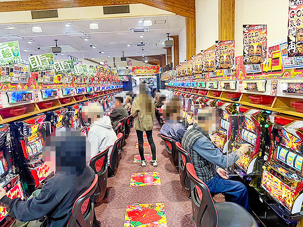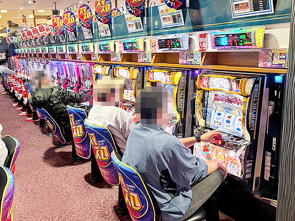 「ハナハナホウオウ~天翔~-30」や「キングハナハナ-30」、「沖ドキ!GOLD-30」といった沖スロも盛況で、シマ全体がプレイヤーの熱気に包まれていた。