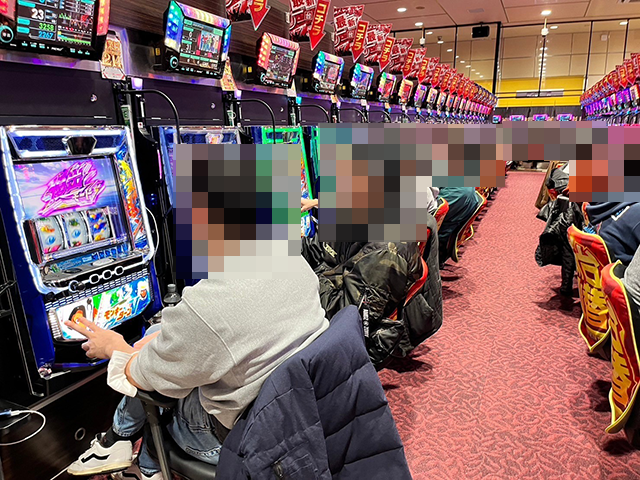 多彩な機種が設置されているホールであり、幅広い年代のプレイヤーが楽しそうに遊技をおこなっていた。