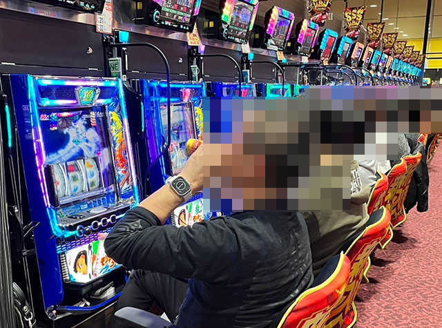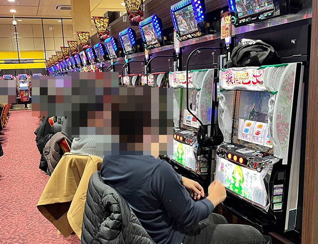 14時半をまわった頃の「スマスロ北斗の拳」は8割以上が埋まり、シマ内は大にぎわい。
