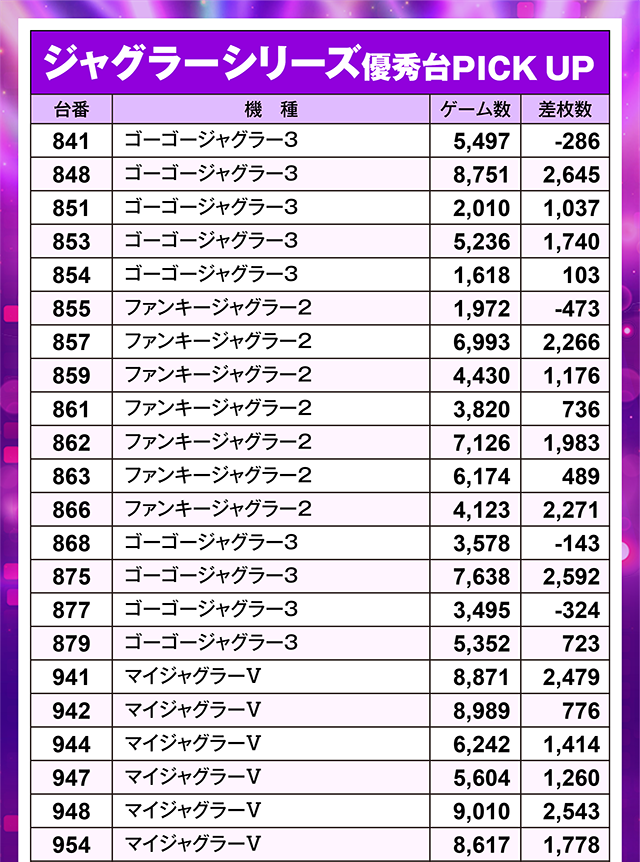 増台された「ゴーゴージャグラー3」にも、優秀台がたくさんあったぞ!