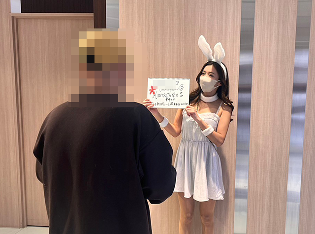 ちなみに、今回は白いバニーガール風のコスチュームでお届けします!