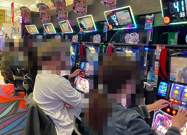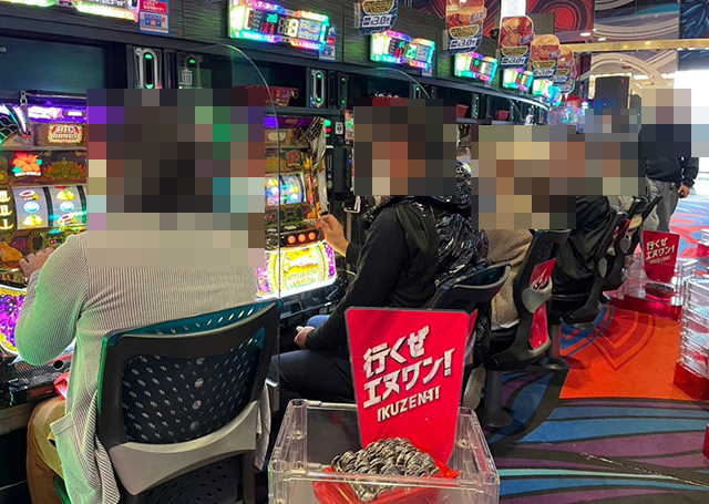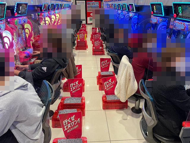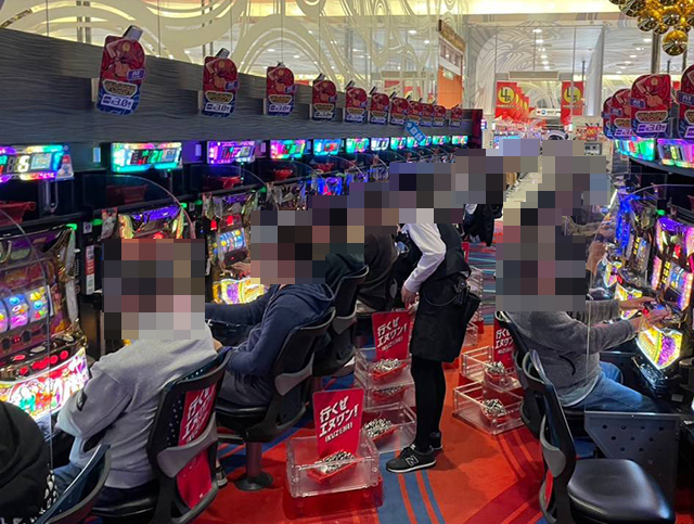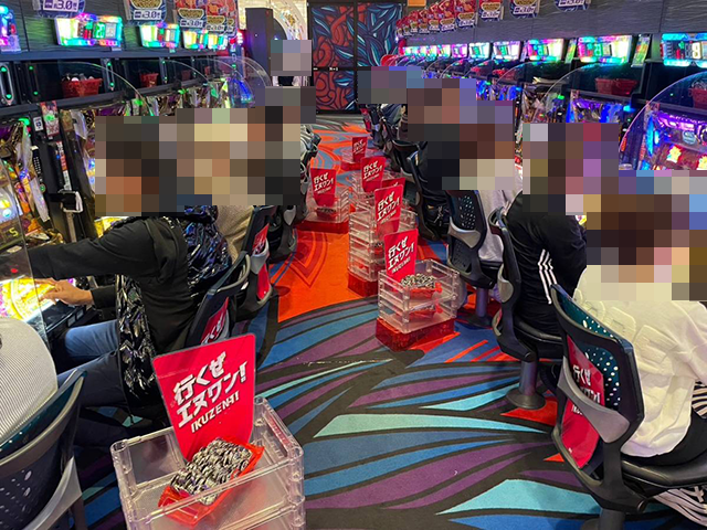 店内にはたくさんのプレイヤーが集まり、パチンコもパチスロも活気に包まれていた。
