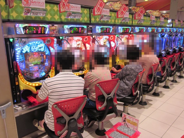 4円パチンココーナーでは、「CRスーパー海物語」を筆頭に海物語シリーズのシマは多くのプレイヤーで埋め尽くされていた。年配のプレイヤーが高く見受けられたが、各々台の魅力を堪能しながら楽しそうな表情を浮かべ遊技をしていた。