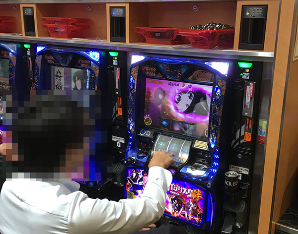 午後の20円パチスロでは、「バジリスク~甲賀忍法帖~絆」が大盛況。機種の性能を最大限まで引き出しているといったプレイヤーが多い。