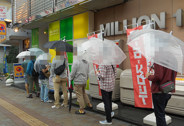 朝から悪天候となっているなか、多くのプレイヤーが入場抽選に参加。開店を心待ちにしている様子もうかがえた。