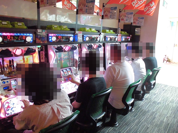 17時頃になっても「SLOT魔法少女まどか☆マギカ2」や「バジリスク~甲賀忍法帖~絆」、「パチスロBLOOD+ 二人の女王」など、楽しそうに20円パチスロで遊技をしていた姿は多い。
