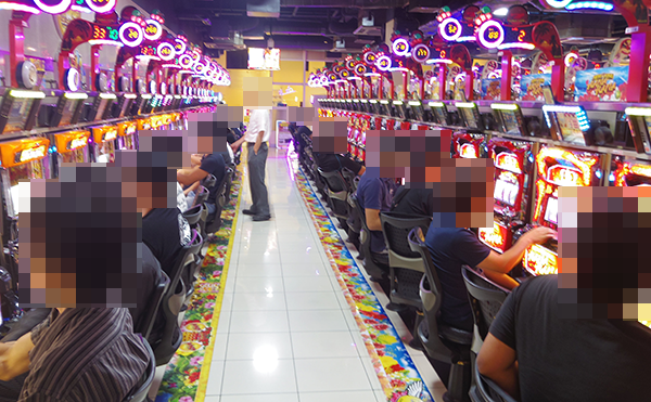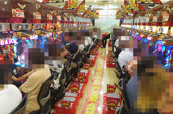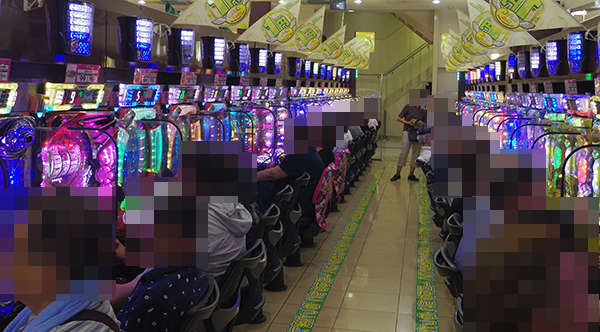 ホール内には多くのプレイヤーが集まっており、パチンコとパチスロの各シマの雰囲気もにぎやか。