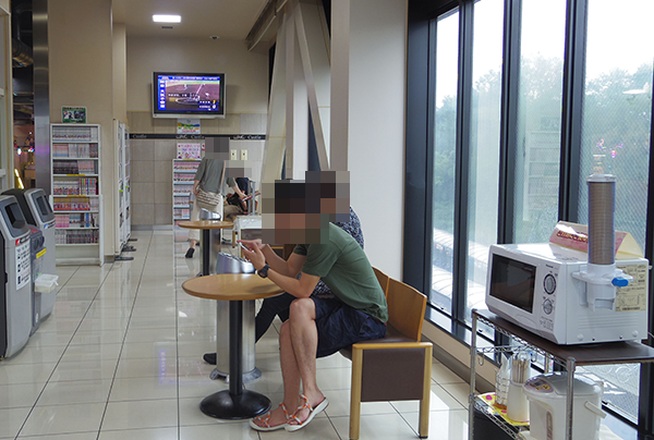 外からの光が入る休憩スペースにも多くの人が集まっており、マンガ本やテレビ、女性専用のマッサージチェアなど、気持ちよく過ごせる設備も充実。