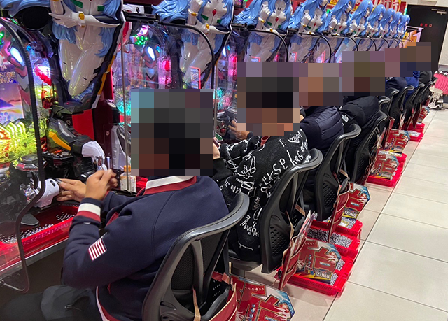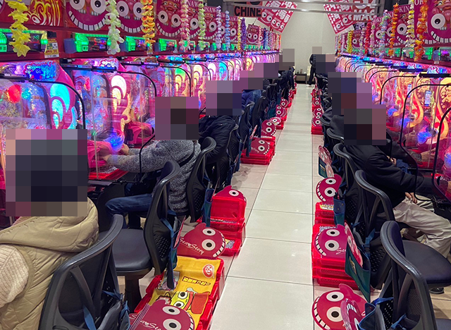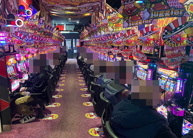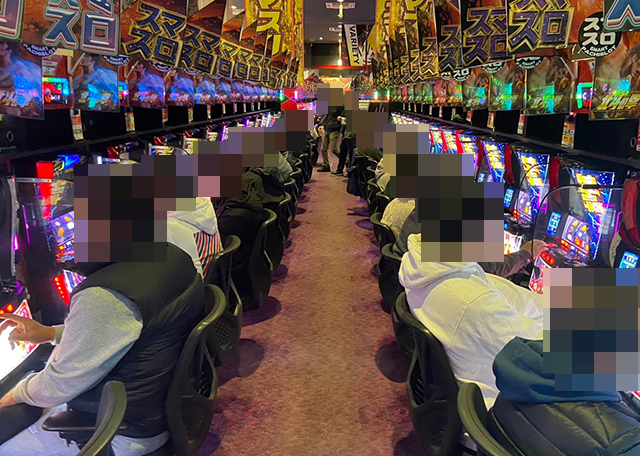 スマパチもすべての台が埋まっており、パフォーマンスを披露するプレイヤーがズラリと並んでいた。