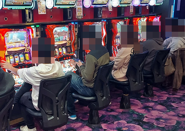 最新機種の『スマスロモンキーターンV』や『スロット ソードアート・オンライン』にも遊技を満喫しているような姿があり、華やかなシーンを確認している。