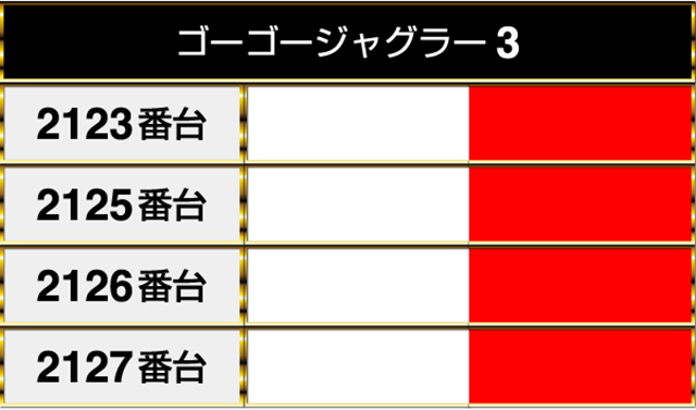 『ゴーゴージャグラー3』も4台が連なってプラスptを記録した。