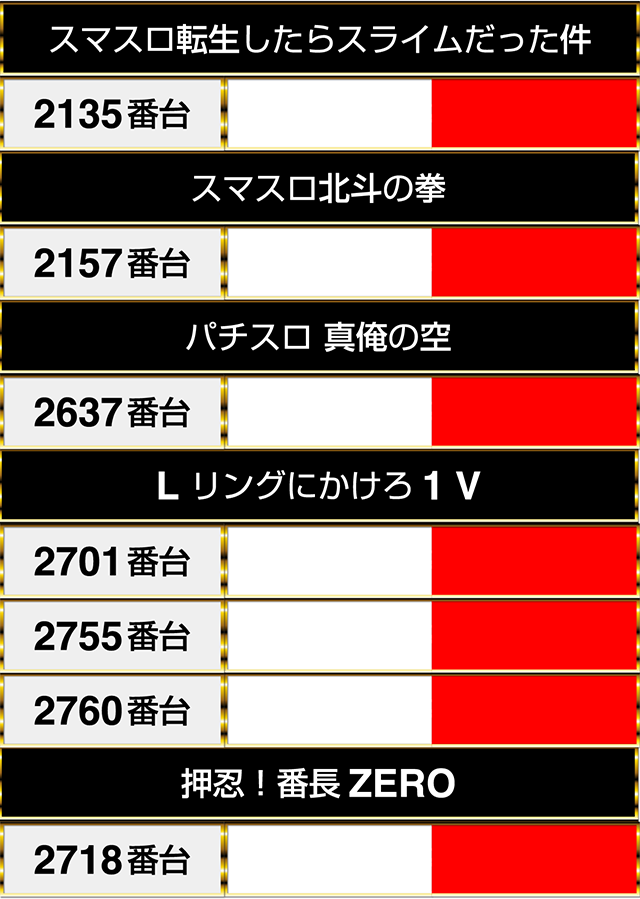 『Lバキ 強くなりたくば喰らえ!!!』の2018番台や『スマスロ転生したらスライムだった件』の2135番台などもプラスptでこの日を終えた。