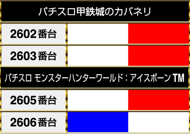 複数の機種を通してプラスptの台が並ぶ場所は、『HEY!エリートサラリーマン鏡』や『パチスロ甲鉄城のカバネリ』などにもあった。