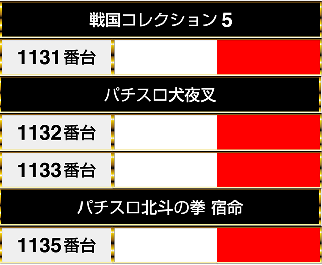 最終的には『戦国コレクション5』の1131番台から『パチスロ北斗の拳 宿命』の1135番台までが並んでプラスpt!!